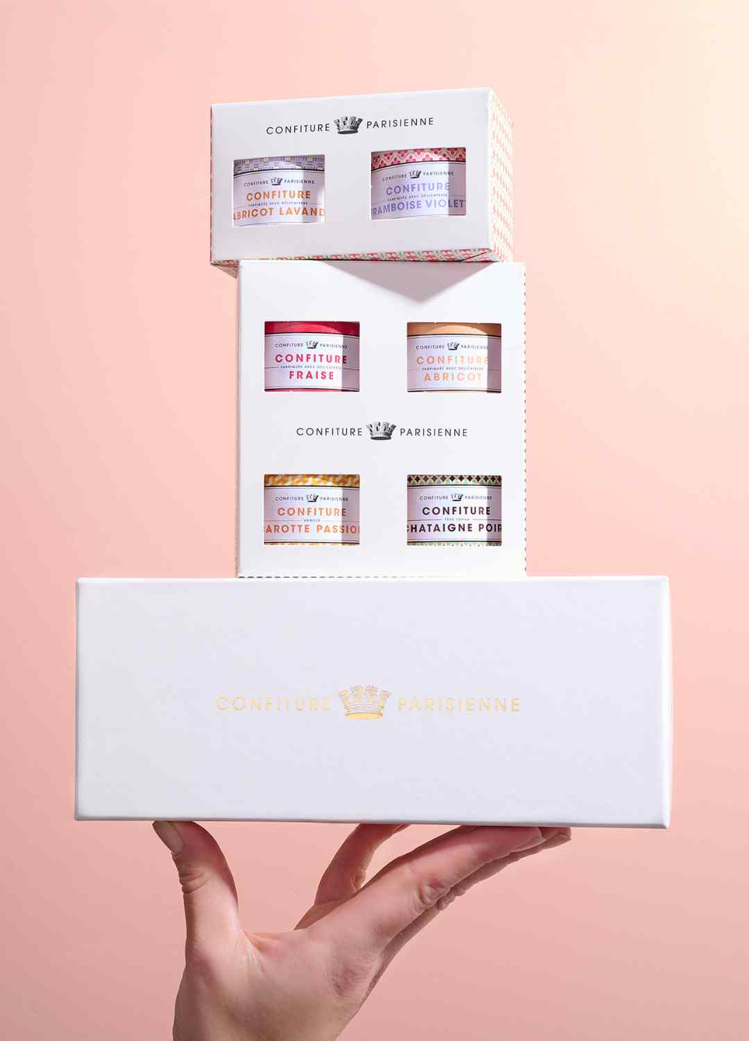 Confiture Parisienne cultivates the taste for well-wrapped gifts: elegant boxes, bags, boxes and gift boxes enhance each jar and recipe.