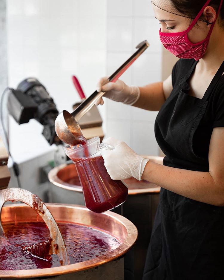 Cooked in small batches in copper cauldrons, each jam is carefully prepared, all its ingredients integrated with balance to find their exact place and express all their flavor.