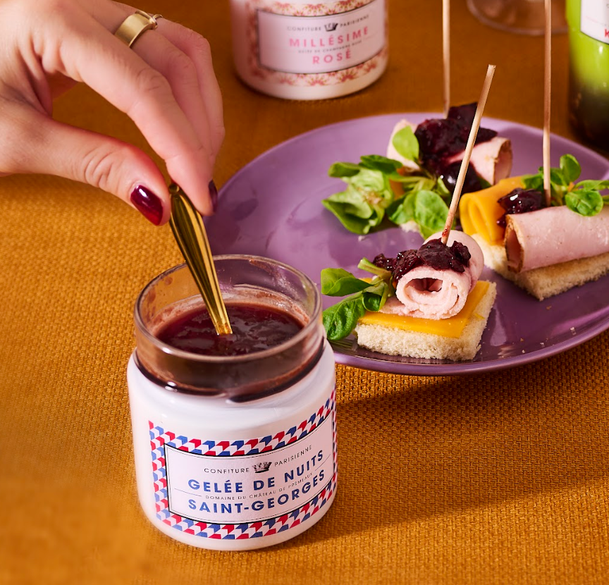 Confiture Parisienne innovates and celebrates. It innovates with the first Nuits-Saint-Georges Burgundy wine jam. And not just any jam: the one from the Château de Prémeaux estate. Purple in color, flavors of cherry, strawberry, blackcurrant, leather, and truffle. Nuits! What a beautiful name to celebrate the romantic celebrations that await us under the Parisian sky. Yes, Nuits-Saint-Georges jelly is a beautiful evening jam: it goes effortlessly with friends' cheeses like the brioche of the aristocracy.