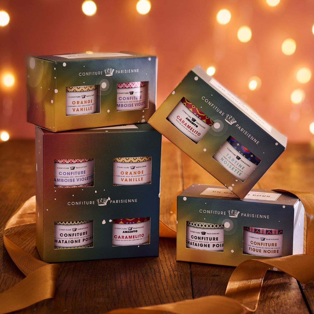Cultivez l'art d'offrir avec Confiture Parisienne et découvrez un large choix de coffrets cadeaux pour Noël : de la petite attention au coffret d'exception !